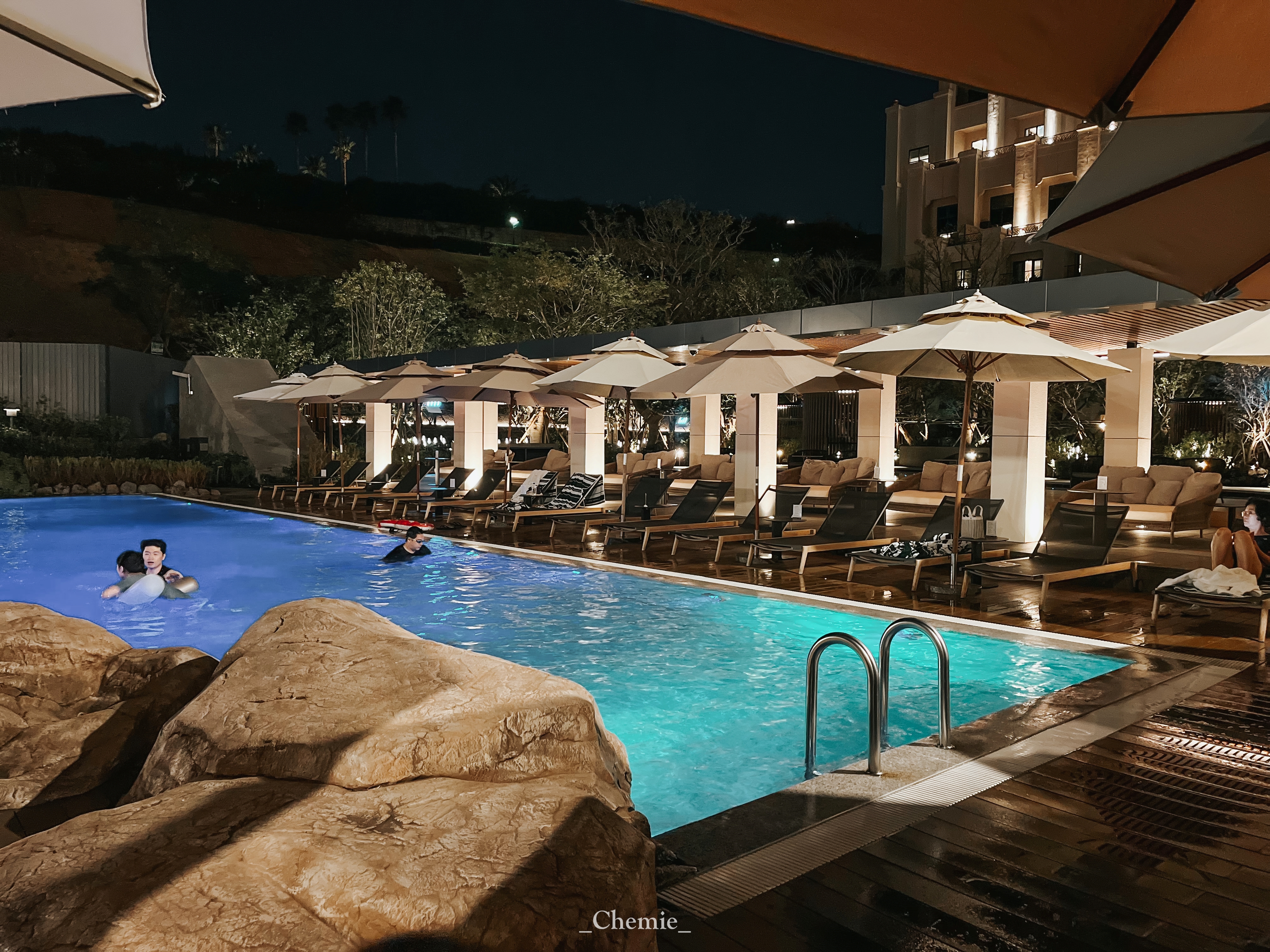 롯데호텔 제주의 수영장 해온은 워낙에 분위기가 좋기로 유명한데, 그 유명세에 걸맞게 아주 예쁘고 따뜻하고 분위기가 좋았다. 넓고, 구석구석 보면 온수 풀의 종류도 많고 즐길거리도 많았다. 슬라이드도 있는데 이건 낮에만 운영하는 것 같다. 우리가 갔을 때는 이용하는 사람도 없고 이용도 불가능했던 듯. 메인풀이 아주 길게 끝에서 끝까지 이어져 있는데 가운데가 가장 깊고 끝으로 갈수록 다양한 깊이로 맞춰져 있어서 원하는 위치에서 사용하면 되는 구조. 우리는 10월에 갔었는데 야외풀을 아이들과 함께 이용하기엔 너무 춥지 않을까 고민되어서 마지막까지 수영장 이용이 망설여졌다. 그런데 아이들도 아주 좋아했고 이용하길 잘했다는 생각이 든다. 우리가 체크아웃을 하던 날에는 하루종일 날씨가 정말 따뜻해서 이런 날엔 정말 수영하기 좋겠다, 싶었더랬다. 제주는 10월까지는 따뜻한 날을 골라서 아이들과 야외풀 이용도 괜찮은 것 같다.
